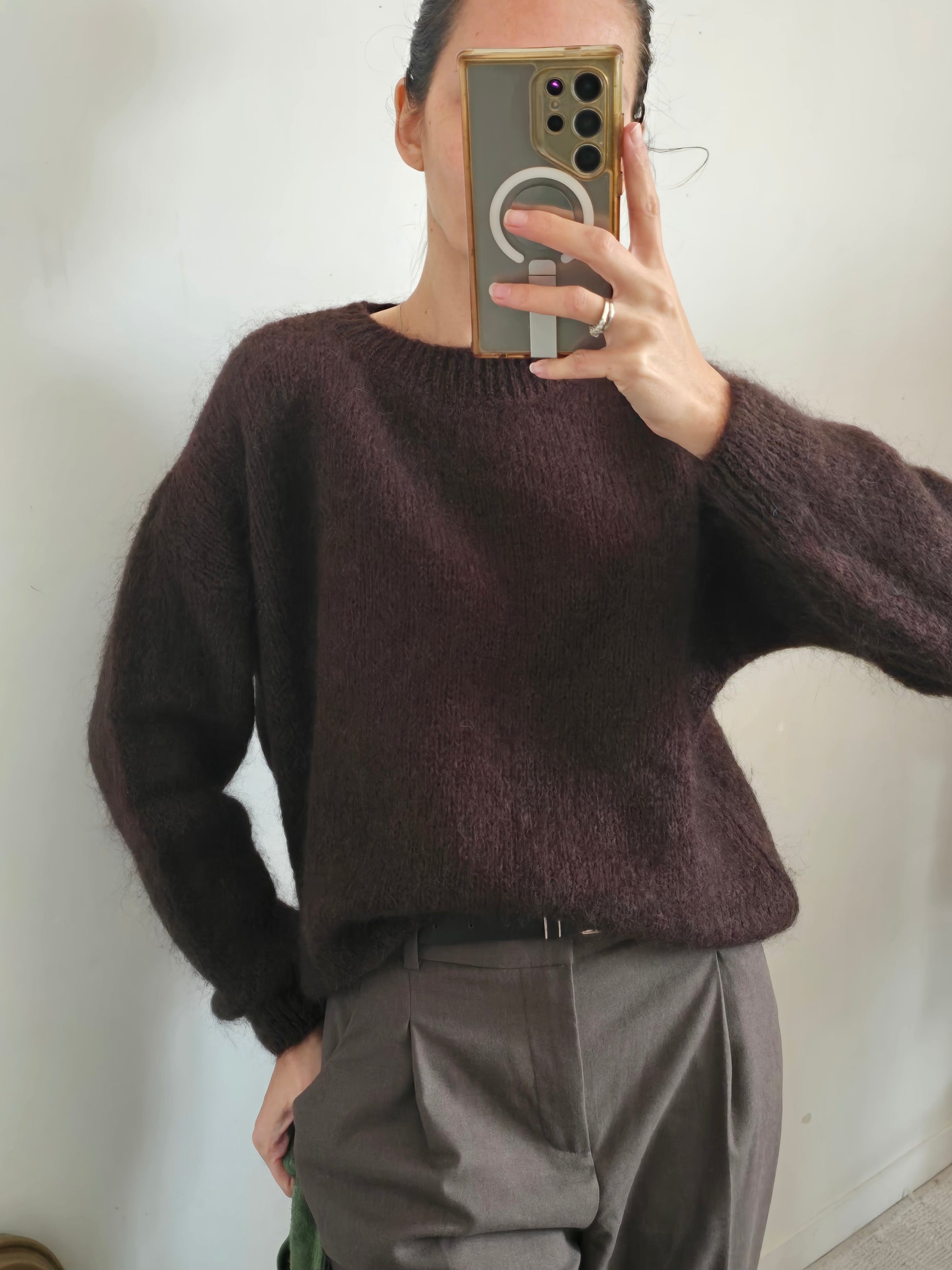 Maille chocolat en laine mélangée